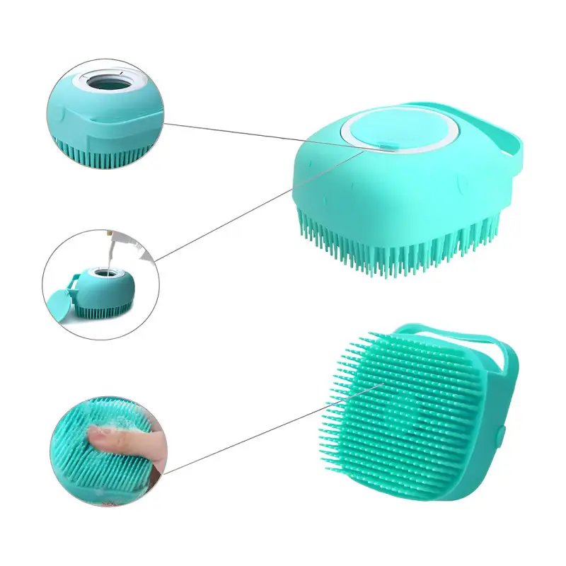 Este cepillo 2 en 1 facilita la aplicación del champú mientras ofrece un suave masaje, haciendo del baño una experiencia positiva.